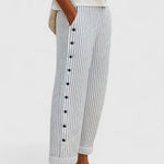 As Calças Sharmaine representam a elegância sem esforço através de um artesanato irrepreensível e materiais selecionados para longa durabilidade e conforto discreto. O acabamento é meticulosamente trabalhado até ao último detalhe, tornando as calças um investimento atemporal em desempenho e prestígio, que o acompanha em cada dia e festa. A risca de inspiração marítima confere um look esguio e clássico com linhas verticais nítidas, e os botões únicos nas laterais adicionam um acento marcante, mas discreto. As bainhas das calças viradas completam o visual com um toque moderno e descontraído. A disponibilidade limitada sublinha a Sharmaine como uma favorita dos colecionadores, que combina luxo sutil com valor duradouro e exclusividade no guarda-roupa. Esta construção reflete a herança e a modernidade em um equilíbrio harmonioso.