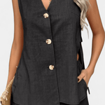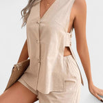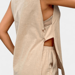 Linho | Conjunto une uma silhueta descontraída e sofisticada com a frescura natural do linho. A parte superior justa com decote em V e botões confere um aspeto arrumado e elegante, enquanto os calções com cintura elástica garantem liberdade de movimento. O linho leve e texturizado reflete artesanato e qualidade, e o conjunto exala uma elegância calma e intemporal inspirada em Loren. Com fibras naturais e um acabamento durável, o Linho | Conjunto é um investimento no guarda-roupa de verão — um conjunto que se adapta a dias ensolarados, brunches e passeios pela cidade sem comprometer o conforto. O linho premium em qualidade leve e texturizada traz a natureza para o seu guarda-roupa e promete longa durabilidade. A estética inspirada em Loren emana uma elegância calma e intemporal e um acabamento artesanal. Disponibilidade limitada — um verdadeiro investimento no guarda-roupa de verão com durabilidade.