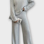 Nanna | Conjunto irradia uma elegância intemporal e um artesanato requintado. Este conjunto de veludo cotelê é composto por uma blusa de gola alta e calças largas em fino veludo cotelê, que conferem uma textura limpa e quente, além de uma silhueta sofisticada. A profunda estrutura em nervura capta a luz e acrescenta caráter com um calor discreto, enquanto o material e a construção testemunham consideração e qualidade. O conjunto é projetado para o lazer moderno, trabalho em casa e looks urbanos – podendo ser usado em conjunto ou como peças separadas. Com um número limitado, a sua exclusividade e apelo para colecionadores são sublinhados, criando um valor atemporal que pode tornar-se uma parte duradoura do guarda-roupa e um legado silencioso em estilo e artesanato.