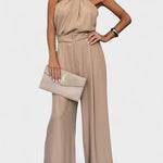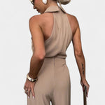 - Decote halterneck e silhueta drapeada – O decote halterneck realça os ombros, enquanto o drapeado solto cria liberdade de movimento e uma proporção lisonjeira e atemporal.