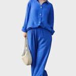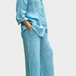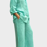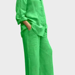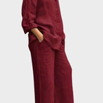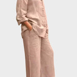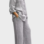 Signe | Conjunto Respirável irradia elegância intemporal e cuidado artesanal. O material tecido e respirável acompanha os movimentos do corpo e proporciona liberdade natural, enquanto o top solto e as pernas de calças retas criam uma silhueta sofisticada. Produzido em pequenas quantidades com materiais selecionados em respeito pelas tradições de design nórdicas, Signe oferece uma base intemporal com longa durabilidade, que pode ser herdada ou partilhada em coleções. A quantidade limitada disponível sublinha a exclusividade e confere ao conjunto um apelo sustentável e valorizante.
