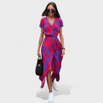 Este deslumbrante vestido envolvente une sofisticação e conforto. O corte elegante valoriza a sua figura, enquanto a silhueta fluída se move graciosamente a cada passo. Seja para um passeio casual ou um evento especial, este vestido garante que se sinta totalmente à vontade.