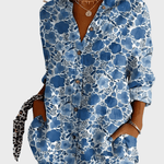 Rosa | Camisa estampada apresenta uma união de elegância intemporal e cuidado artesanal. A qualidade leve e respirável proporciona conforto em todas as estações, enquanto o discreto padrão floral e o acabamento requintado testemunham a atenção aos detalhes e à origem. Rosa sinaliza herança e valor duradouro, e com um número limitado de unidades disponíveis, a camisa destaca-se como um detalhe exclusivo em qualquer guarda-roupa. O elegante decote em V realça a silhueta feminina, enquanto as mangas longas e os punhos sofisticados acrescentam versatilidade ao dia a dia. O material leve e a estrutura refinada tornam Rosa fácil de combinar durante todo o ano com calças brancas ou peças básicas neutras.