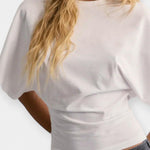 Sofia | T-shirt de Mangas Largas irradia luxo intemporal através de um artesanato cuidadoso e materiais de qualidade. As mangas largas e modernas criam uma silhueta confortável e sofisticada, enquanto a cintura justa realça as linhas do corpo. O tecido ultra macio e respirável envolve a pele suavemente, e os detalhes bem tecidos contribuem para um acabamento refinado. Com a sua palete de cores limpa e corte minimalista, Sofia destaca-se como uma base versátil no guarda-roupa e um investimento em estilo e conforto intemporais. A disponibilidade limitada sublinha a sua exclusividade e apelo para colecionadores.