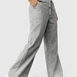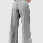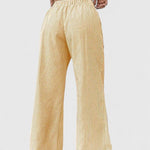 Tatienne | Calças são uma declaração de artesanato e elegância atemporal. Cada detalhe testemunha uma produção cuidadosa e materiais de alta qualidade, que conferem à roupa uma longa durabilidade e um apelo claro de colecionador. O design é adequado tanto para uso diário quanto para ocasiões especiais, mantendo uma luxuosidade refinada e discreta ao longo dos anos. Com um ajuste personalizável na cintura através de elástico e cordão, assentam perfeitamente desde a manhã até à noite.