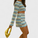 - Detalhes artesanais no top de crochê sinalizam cuidado e qualidade.